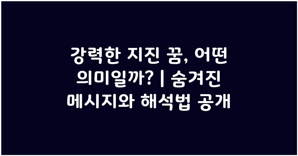 강력한 지진 꿈을 해석하는 것은 단순히 꿈을 이해하는 것 이상입니다. 이 꿈을 통해 우리 내면의 소리, 감정, 그리고 삶에서 변화가 필요하다는 신호를 인식할 수 있습니다. 강력한 지진 꿈, 어떤 의미일까? 이 질문에 대해 진지하게 고민해보는 것은 우리 삶의 질을 높이는 데 큰 도움이 될 것입니다. 😊