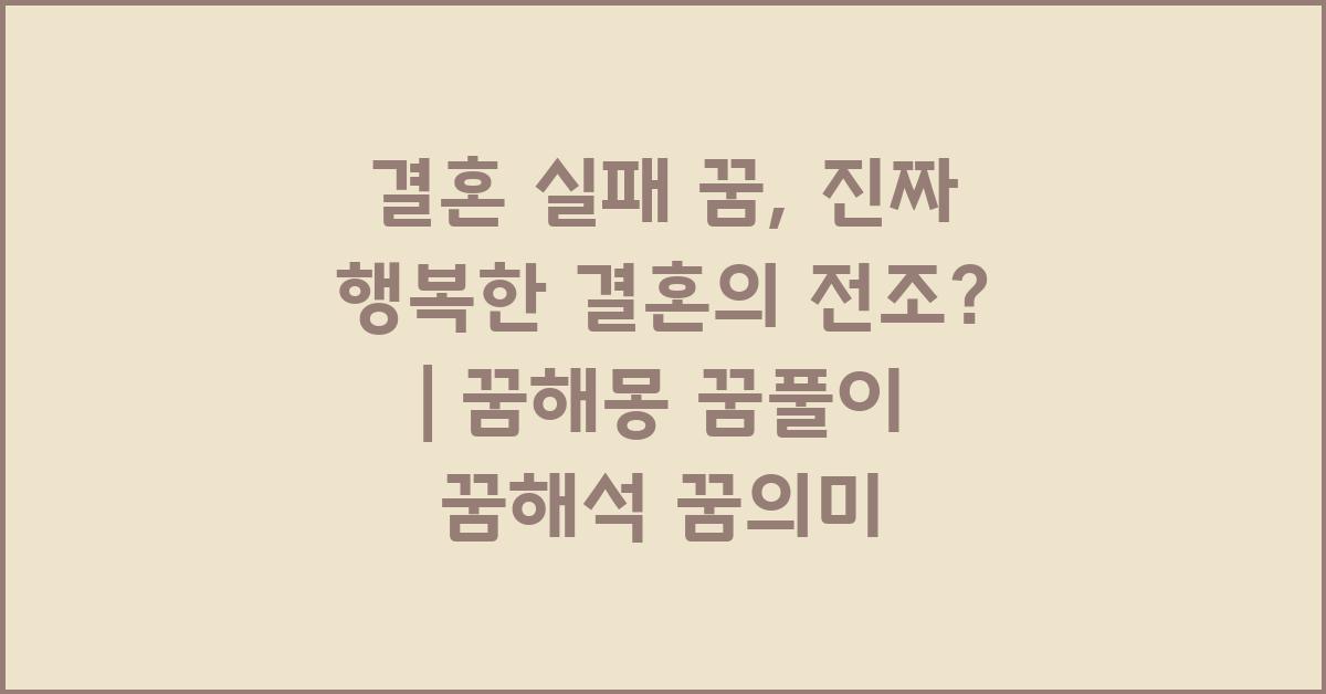 - 결혼 실패 꿈의 의미는 무엇인가요?