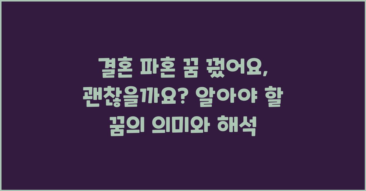 우리의 꿈은 종종 우리의 잠재의식과 감정을 반영합니다. 그래서 결혼 파혼 꿈 꿨어요, 괜찮을까요? 라는 질문은 많은 이들이 던지는 의문 중 하나입니다. 결혼을 꿈꾸는 사람이라면 특히 그런 꿈을 꿨을 때 자연스럽게 불안한 감정이 드는 것이 당연합니다. 하지만 이 꿈의 의미는 단순히 파혼에 대한 두려움만을 반영하는 것이 아닙니다. 꿈속에서 일어나는 다양한 상징들은 나 자신과의 대화를 통해 새로운 통찰을 제공해 줄 수 있습니다.