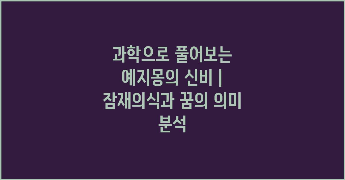 많은 이들이 꿈해몽이나 꿈풀이를 통해 자신이 꾼 꿈의 의미를 찾고자 합니다. 이처럼 예지몽의 신비를 과학으로 풀이해보려고 하면, 잠재의식의 작용과 꿈의 의미를 분명히 알아볼 수 있습니다. 예지몽이 주는 신비감을 이해하는 것은 우리의 삶을 더욱 풍요롭게 하는 데 도움을 줄 수 있습니다.