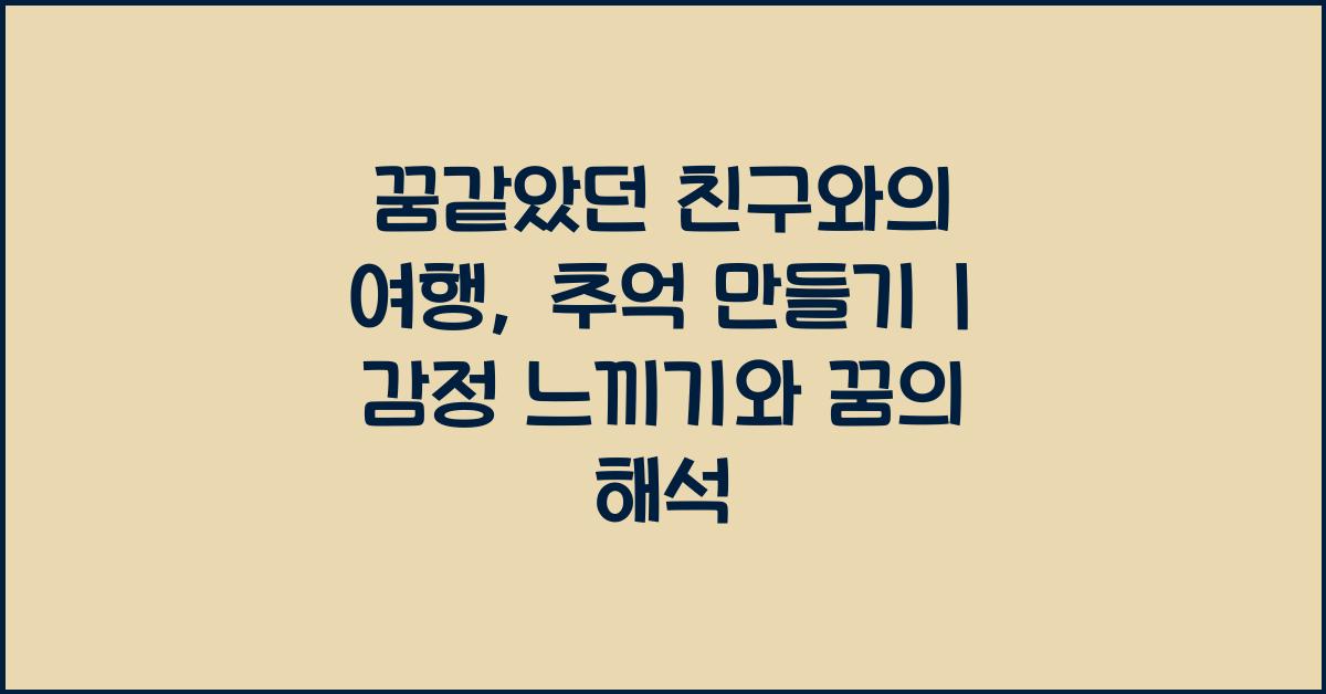 이번 글에서는 꿈같았던 친구와의 여행에서 느꼈던 감정과 그 추억을 어떻게 해석할 수 있는지, 꿈의 의미에 대해 깊이 탐구해보겠습니다.