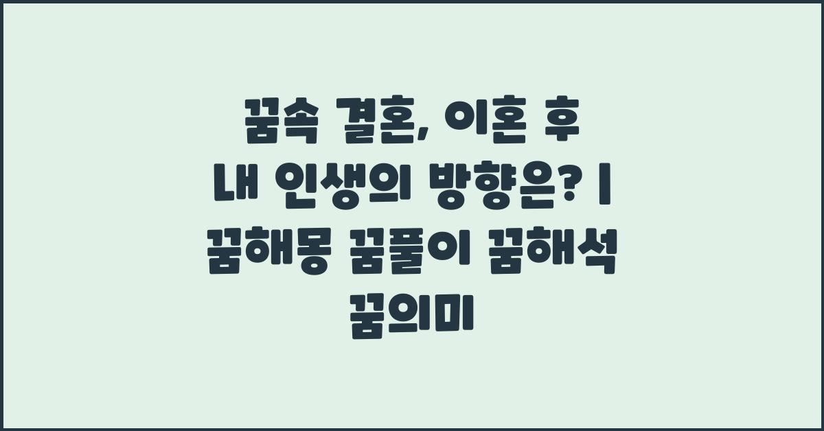 꿈속 결혼, 이혼 후 나의 미래는? | 꿈해몽 꿈풀이 꿈해석 꿈의미에 대한 깊은 탐구는 우리의 삶의 여정에서 빠질 수 없는 부분입니다. 이러한 질문들은 때로는 우리의 정체성과도 연결되어 있습니다. 어떤 결정을 내리고 어떤 방향으로 나아갈지, 이를 통해 우리는 더욱 성장할 수 있는 기회를 찾을 수 있습니다.