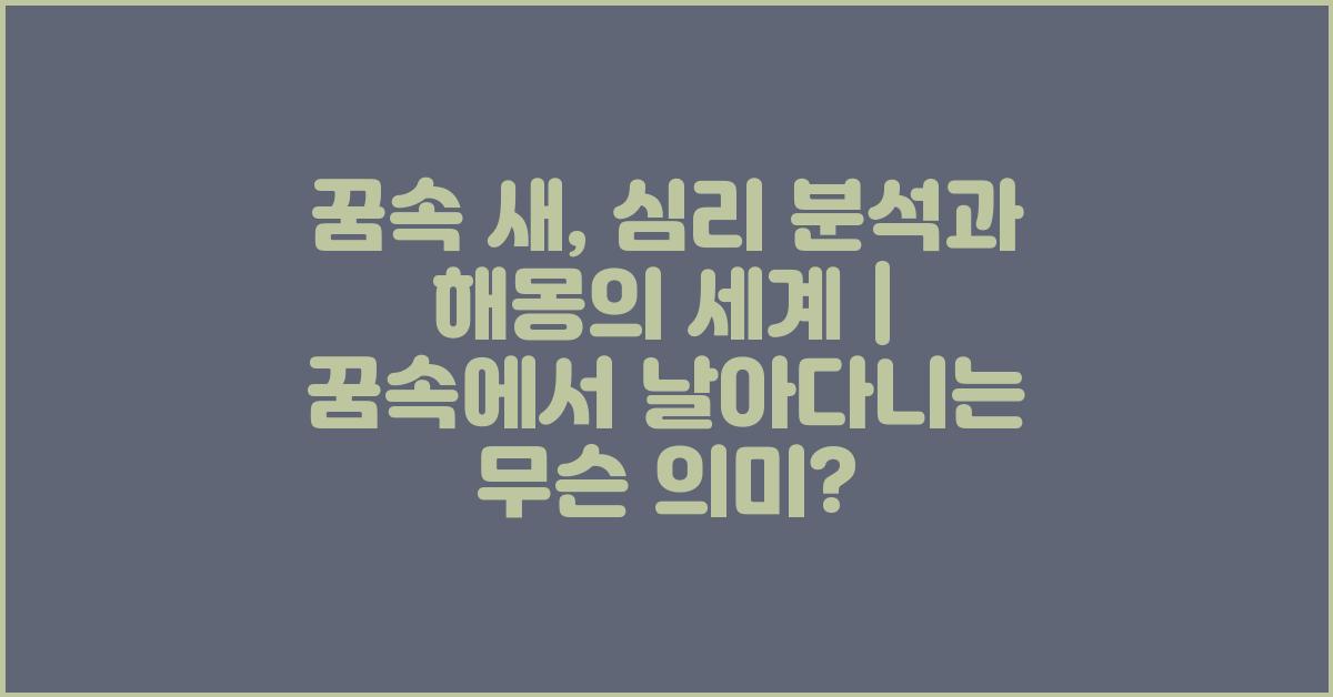 꿈속에는 우리 내면의 메시지가 숨어 있습니다. 특히 꿈속 새는 그 상징성이 매우 큰데요. 새는 자유롭고, 한편으로는 여러 감정을 인간과 연결하는 매개체입니다. 여러분은 꿈속에서 날아다니는 새를 보았을 때 어떤 느낌을 받으셨나요? 이러한 순간에는 복잡한 감정이 담겨 있을 수 있습니다. 꿈속 새: 심리 분석과 해몽의 세계 | 꿈해몽 꿈풀이 꿈해석 꿈의미에서 그 의미를 찾을 수 있을 것입니다. 꿈속에서의 새는 때때로 우리가 놓치고 있는 중요한 통찰을 제공하기도 하죠.