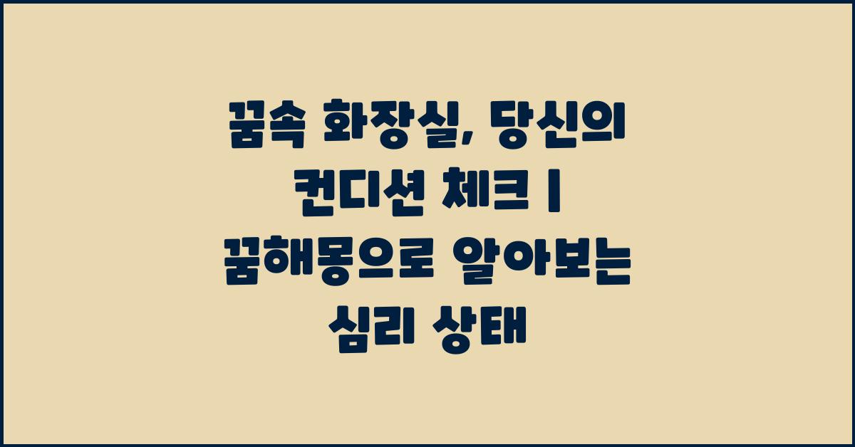 꿈속 화장실, 당신의 컨디션 체크 | 꿈해몽 꿈풀이 꿈해석 꿈의미에 대해 이야기를 시작해 볼까요? 꿈은 우리 마음의 상태를 반영하고 있어요. 우리가 잠들 때, 뇌는 여전히 활동하며 다양한 상상을 펼칩니다. 그중 하나가 바로 꿈인데, 특히 화장실과 관련된 꿈은 그 의미가 특별할 수 있어요. 여러분도 꿈속에서 화장실에 가는 경험이 있었나요? 아마 불안하거나 답답한 감정을 느꼈을 순간도 있을 거예요.