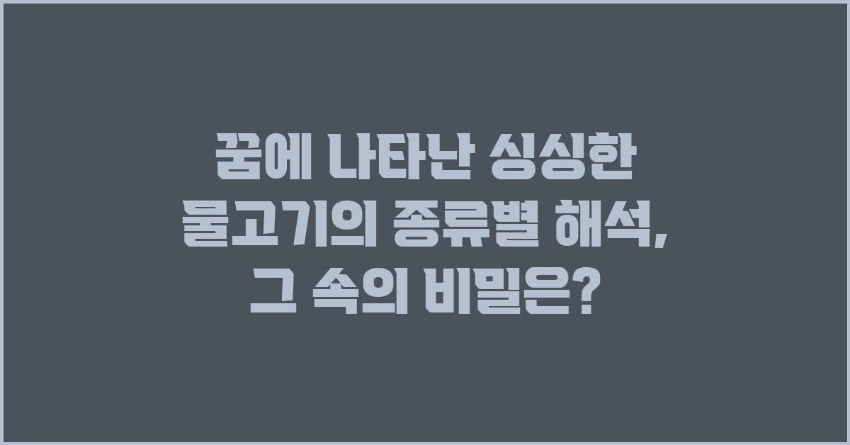 꿈을 통해 얻게 되는 통찰력은 우리에게 많은 도움이 될 수 있으므로, 이를 소중히 여기는 자세가 필요합니다. 꿈에 나타난 싱싱한 물고기의 종류별 해석 | 꿈해몽 꿈풀이 꿈해석 꿈의미를 지속적으로 고민하고 탐구하며, 그 속의 비밀을 파헤쳐 나간다면 삶의 여러 갈등과 힘든 순간들 속에서도 지혜롭게 대처할 수 있을 것입니다.