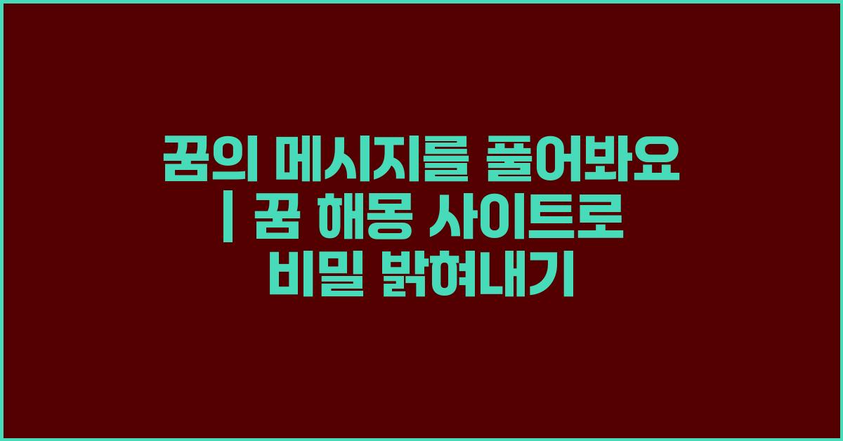 꿈은 우리의 무의식 속에 숨겨진 메시지를 전달하는 특별한 창구입니다. 누구나 한번쯤은 꿈에서 이상한 장면이나 의미심장한 상황을 경험해보았을 것입니다. 이런 꿈들은 단순한 랜덤 이미지들이 아니라, 우리의 감정, 고민, 원하는 바를 표현하는 중요한 신호입니다. 꿈 해몽 사이트를 통해 이러한 꿈의 메시지를 풀어보면, 자신을 이해하고 삶의 방향성을 잡는 데 큰 도움이 됩니다.