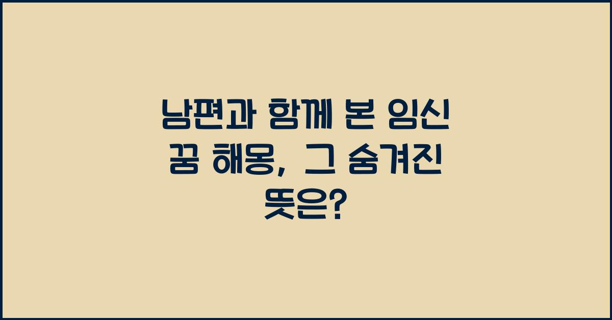 남편과 함께 본 임신 꿈 해몽 | 꿈해몽 꿈풀이 꿈해석 꿈의미는 우리에게 여러 메시지를 전달합니다. 꿈은 단순한 환상이 아니라, 우리의 내면 깊은 심리를 알아볼 수 있는 기회입니다. 꿈을 자주 나누는 부부가 되면서 서로를 더욱 잘 이해하고 함께 성장해 나가시면 좋겠습니다.