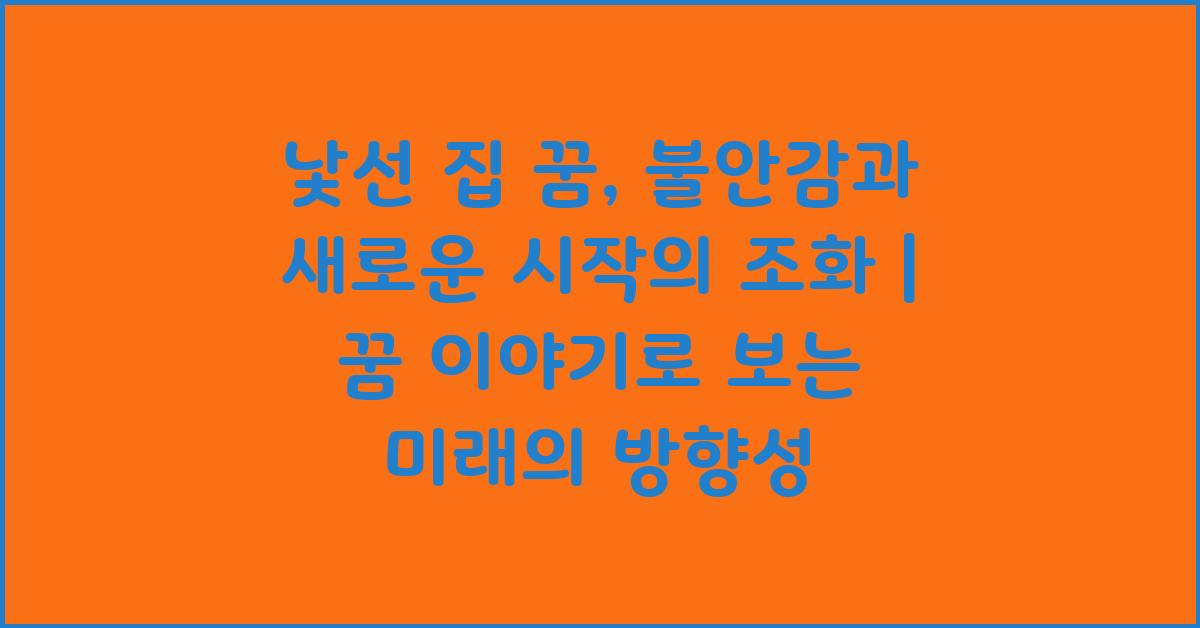 A1: 꼭 그렇지 않습니다. 낯선 집은 새로운 시작과 가능성을 나타낼 수도 있으며, 불안과 희망이 복합적으로 얽혀 있을 수 있습니다.
