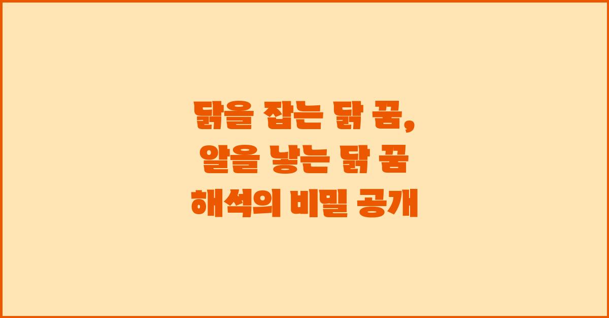 📌 꿈의 의미: 닭을 잡는 닭 꿈, 알을 낳는 닭 꿈 해석