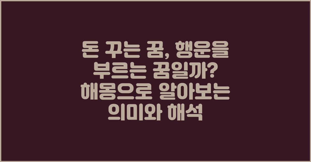 돈 꾸는 꿈은 그저 꿈이 아닙니다. 현실에서 느끼는 감정과 연결되어 있으며 행운의 예고일 수도 있죠. 다음번에 이런 꿈을 꾸게 된다면, 그 의미를 한 번 더 생각해보세요. 꿈은 여러분의 내면을 들여다보는 창이니까요!