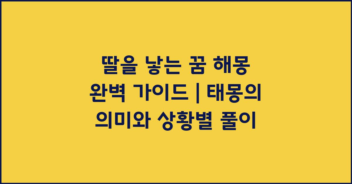 태몽 해몽은 간단히 말하자면, 꿈을 분석하여 그 의미를 찾아내는 작업입니다. 딸을 낳는 꿈을 꾼 후, 구체적으로 어떤 상황에서 이 꿈이 나타났는냐에 따라 해석이 달라질 수 있습니다. 다양한 요인을 고려하여 상황별로 꿈의 의미를 분석해보겠습니다.
