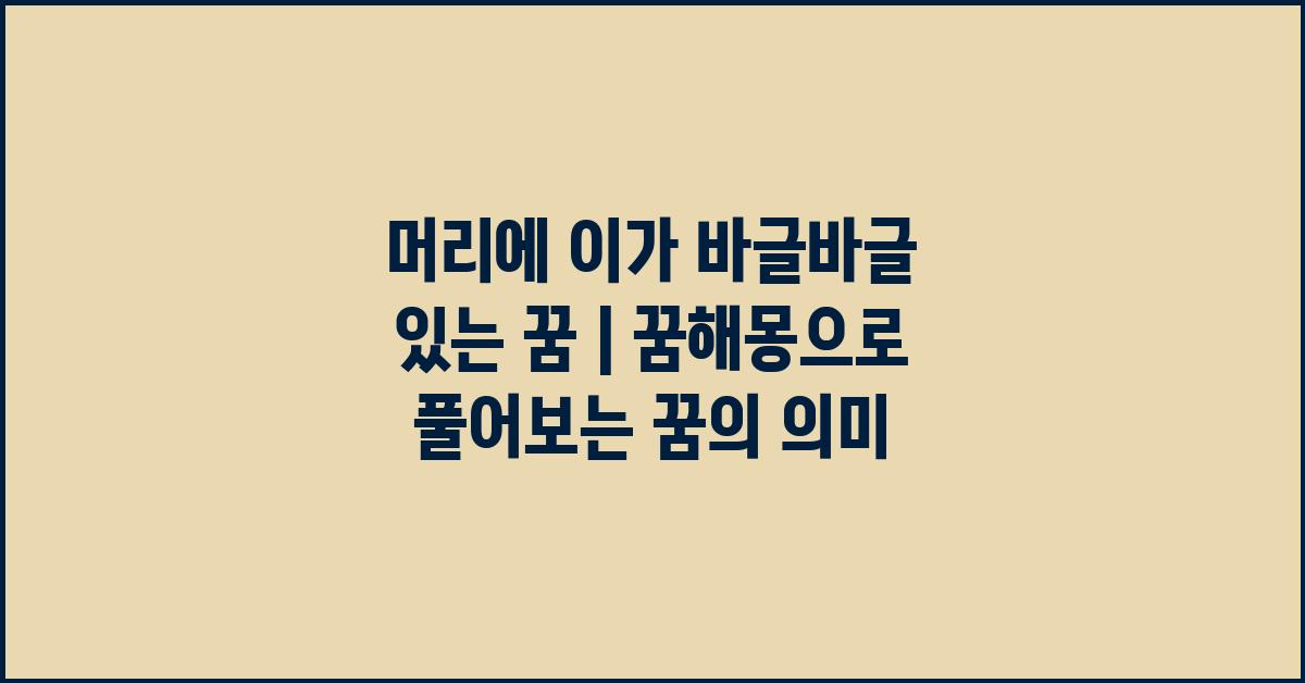 꿈은 항상 신비롭고 우리에게 다양한 메시지를 전달하려는 시도로 여겨져 왔습니다. 꿈 속에서 머리에 이가 바글바글 있는 상황은 특히 불안감이나 스트레스를 표현하는 방식으로 해석될 수 있습니다. 그래서 오늘은 이 꿈의 깊은 의미, 꿈해몽의 방법을 탐구해보려고 합니다. 꿈속의 이러한 장면은 종종 우리가 현실에서 직면하고 있는 문제나 감정의 상징으로 볼 수 있습니다.