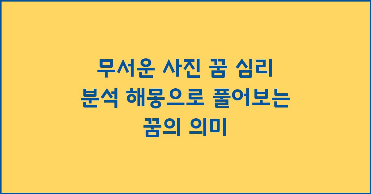 무서운 사진 꿈을 꿨다면, 그 의미는 단순히 악몽이 아닙니다. 심리 분석 해몽을 통해 여러분의 내면을 들여다보고, 꿈의 실질적인 의미를 알아봅시다.