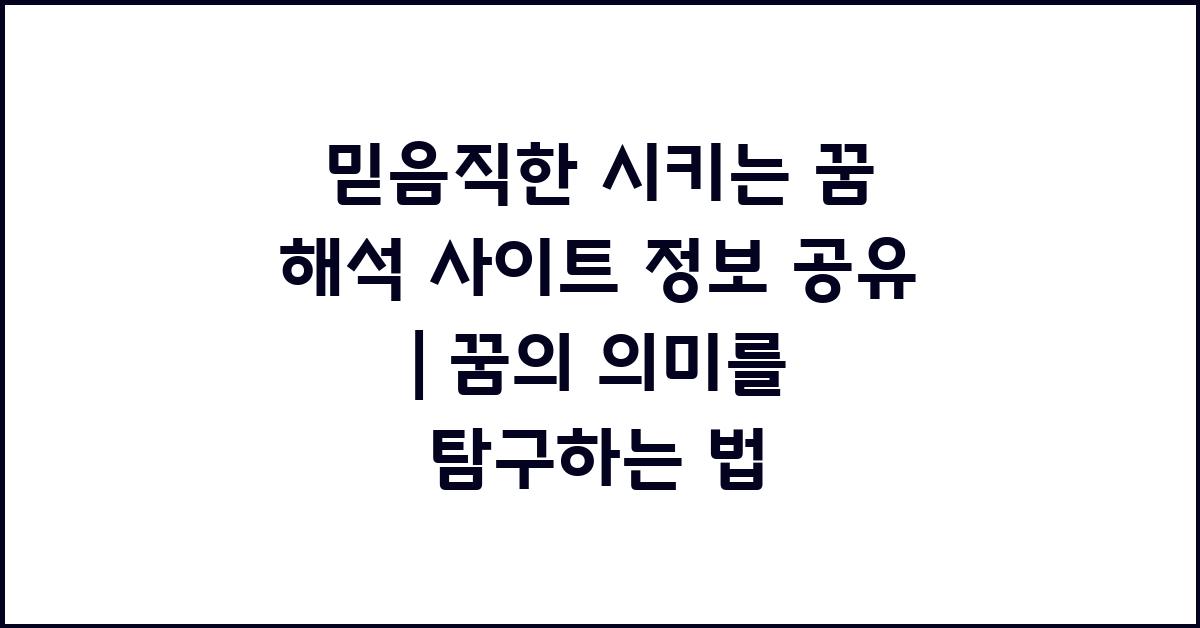 믿음직한 시키는 꿈 해석 사이트 정보 공유 | 꿈해몽 꿈풀이 꿈해석 꿈의미와 같은 신뢰할 수 있는 사이트를 추천합니다. 다양한 의견과 해석을 접할 수 있습니다.