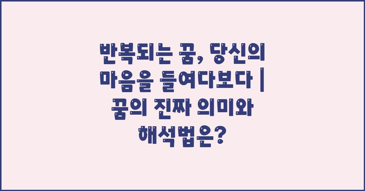 꿈이 반복되는 것은 내면의 감정이나 생각을 반영하는 경향이 있습니다. 주로 스트레스나 불안, 혹은 중요한 변화를 암시할 때 나타납니다.