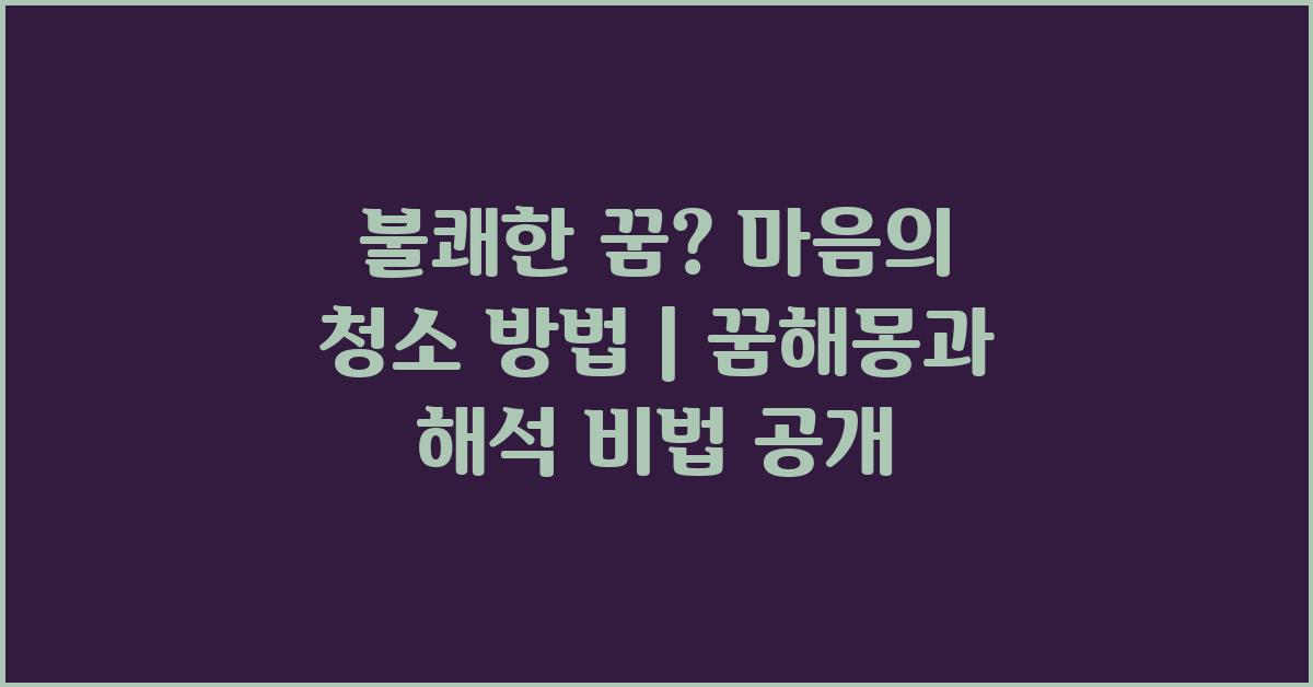 불쾌한 꿈? 마음의 청소 방법과 꿈해몽, 해석 비법을 알아보았습니다. 꿈속의 메시지를 이해하면서 마음의 청소가 이루어지길 기원합니다!
