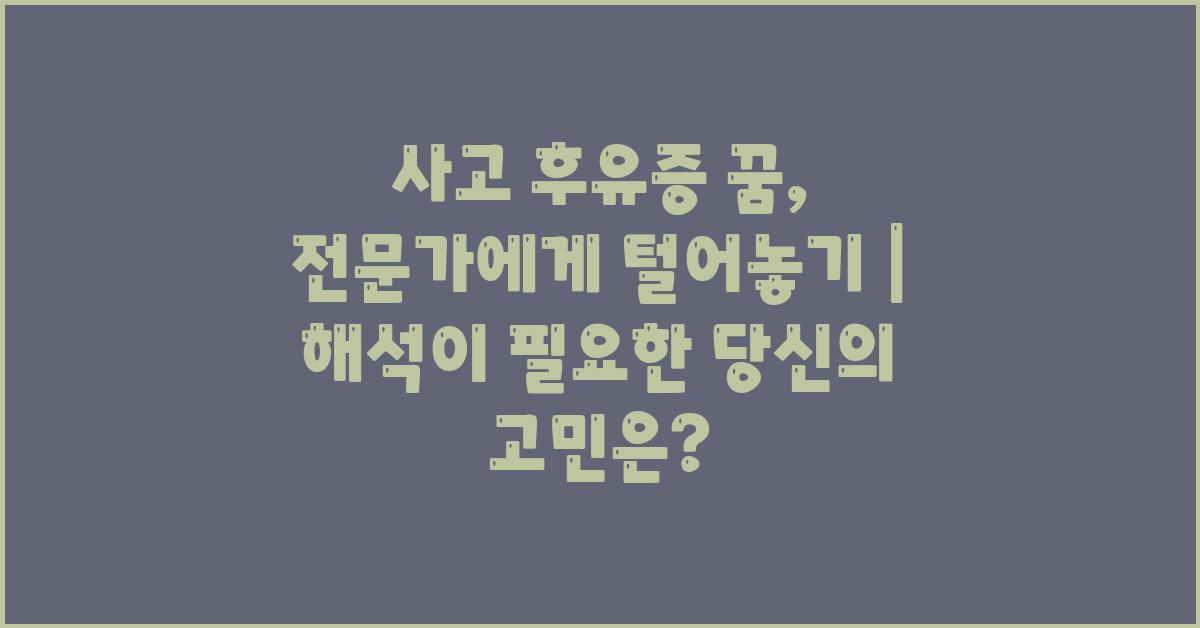 사고 후유증 꿈은 사고를 경험한 이후 그와 관련된 감정이나 기억이 꿈으로 나타나는 현상입니다.