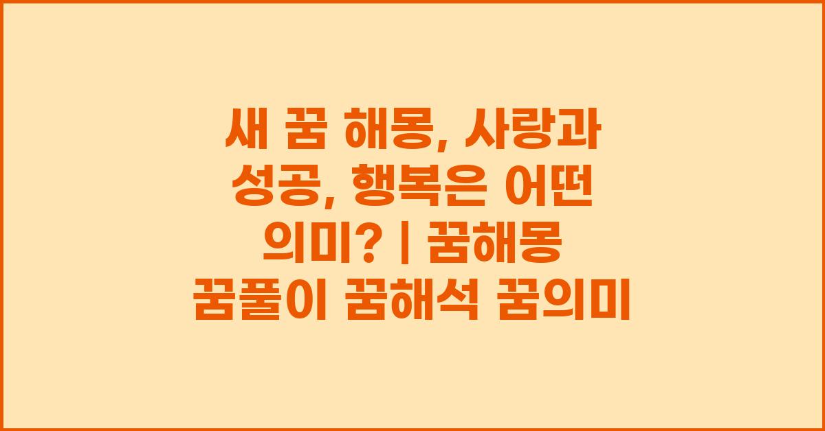 꿈은 종종 우리의 내면 깊은 곳에서 비롯된 감정과 욕망을 반영합니다. 특히 사랑, 성공, 행복과 같은 주제를 다루는 꿈은 우리의 삶에서 중요한 요소로 작용하기 마련이죠. 오늘은 이러한 꿈의 해몽에 대해 깊이 있게 이야기해보려 합니다. ’새 꿈 해몽: 사랑, 성공, 행복, 어떤 꿈? | 꿈해몽 꿈풀이 꿈해석 꿈의미’라는 주제로 시작해볼까요?