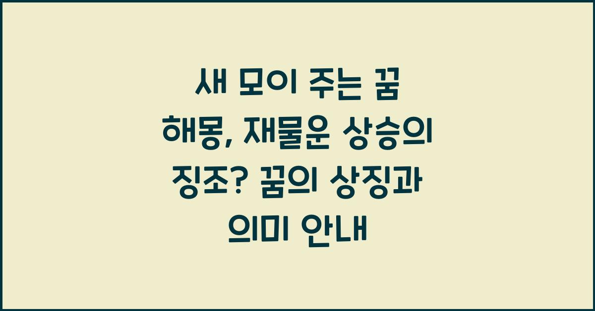 새 모이 주는 꿈은 재물운 상승의 징조로 해석될 수 있습니다. 이번 글에서는 꿈의 상징과 의미를 탐구하며, 꿈해몽의 다양한 측면을 살펴보겠습니다.