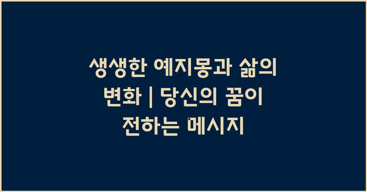 그래서인지 꿈의 해석 과정을 통해 '내가 지금 어떻게 느끼고 있는가?'라는 질문을 스스로에게 던지게 되죠. 결국 이 질문은 삶의 변화를 만들어내는 중요한 요소입니다. 생생한 예지몽과 삶의 변화 | 꿈해몽 꿈풀이 꿈해석 꿈의미는 단순한 이야기의 연대를 넘어, 우리에게 실제로 변화를 주는 씨앗 같은 것입니다. 꿈은 우리 자신과 대화하고, 내면의 목소리를 듣고, 우리가 나아가야 할 방향을 제시합니다.