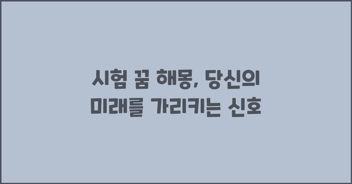 시험 꿈이 가지고 있는 의미는 심리를 깊게 파고들게 합니다. 개인적으로, 저는 대학 시절 수없이 시험 꿈을 꿨습니다. 그때마다 느꼈던 불안감이 정말 생생하게 떠오릅니다. 꿈에서 시험장을 누비며 긴장했던 시간은, 마치 지금도 생생히 기억나는 것 같습니다. 여러분은 이런 경험이 있으신가요?