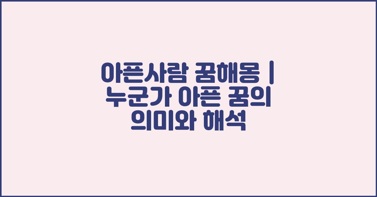 꿈은 우리의 무의식을 드러내는 신비로운 창구이죠. 그 중에서도 아픈 사람에 대한 꿈은 특히 많은 이들이 궁금해하는 주제입니다. 🛌 우리가 누군가가 아픈 꿈을 꿨을 때, 그 꿈이 실제로 어떤 의미를 지니고 있을까요? 오늘은 아픈사람 꿈해몽 | 꿈해몽 꿈풀이 꿈해석 꿈의미에 대해 깊이 알아보겠습니다.