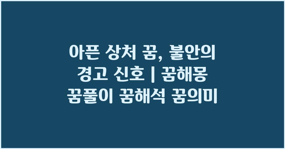 아픈 상처 꿈, 걱정과 불안의 신호 | 꿈해몽 꿈풀이 꿈해석 꿈의미 에 대해 이야기를 나누며, 이러한 꿈의 해석이 중요한 이유를 이해하게 될 것입니다. 꿈은 무의식의 언어로 간주되며, 이를 통해 우리가 미처 인식하지 못했던 감정이나 생각을 보여줄 수 있습니다. 여러분도 꿈을 통해 자신을 더 깊이 이해해 보려 노력해 보세요. 꿈 해석을 통해 자기 발전이나 치유의 계기를 마련할 수 있습니다. 특히, 다양한 감정의 결이 다른 꿈들 중 아픈 상처에 대한 꿈은 정말 특별한 의미를 지닙니다.