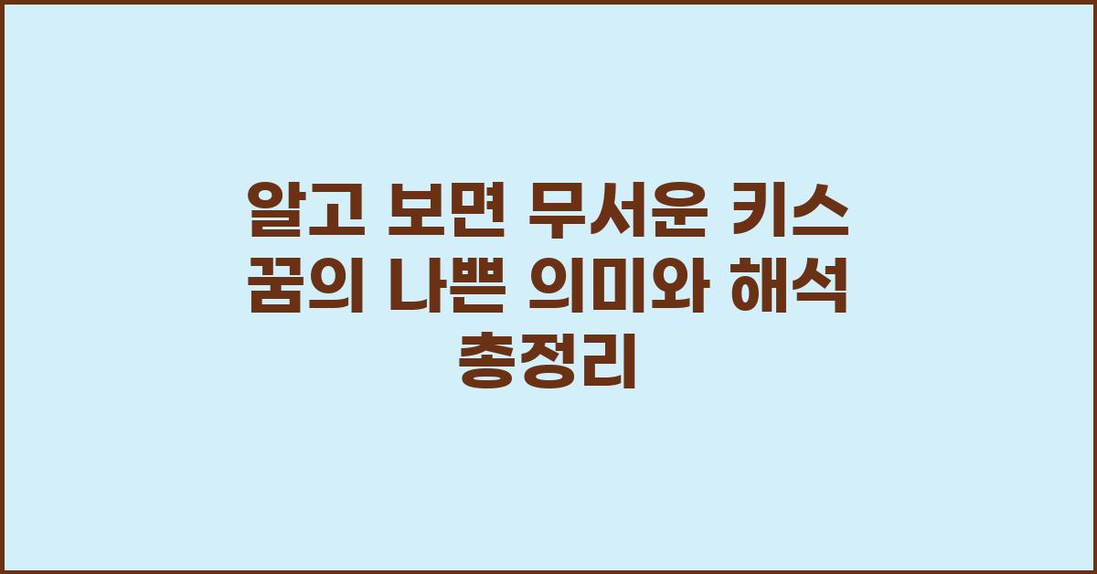 꿈에서 키스를 하는 장면은 대개 사랑이나 애정, 혹은 친밀감을 상징하는 것으로 알려져 있습니다. 하지만 꿈이 다 항상 긍정적인 의미를 지니고 있지는 않다는 사실! 알고 보면 무서운 키스 꿈의 나쁜 의미 | 꿈해몽 꿈풀이 꿈해석 꿈의미를 들여다보면 의외로 복잡한 시사점을 내포하고 있죠. 꿈의 맥락에 따라 서로 다른 해석이 가능하니, 여러분도 자신의 꿈을 되새겨보세요.