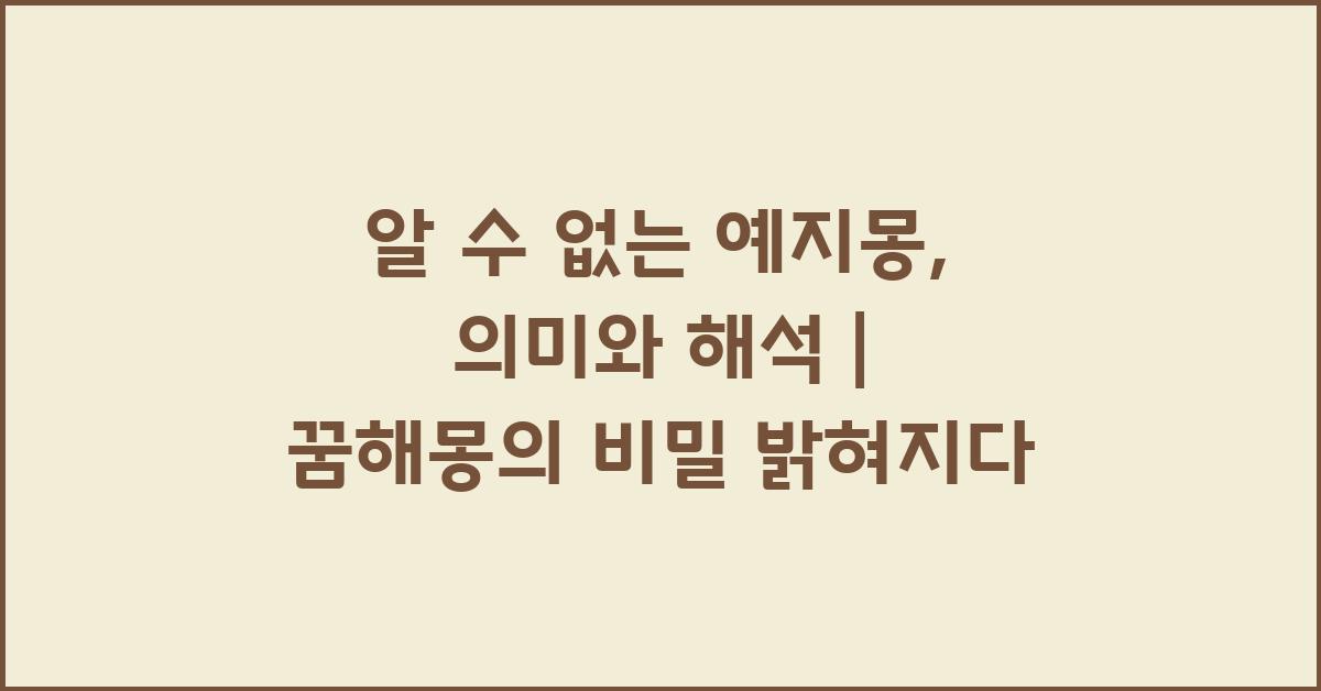 예지몽은 우리의 꿈 속에서 일어나는 신비로운 경험으로, 종종 실제 사건이나 상황을 미리 예견하는 듯한 것이 특징입니다. 많은 사람들은 이러한 꿈이 단순한 상상의 연장이라고 생각할 수 있지만, 그 중 일부는 놀라운 친밀함과 사실을 반영하기도 합니다. 알 수 없는 예지몽, 의미와 해석 | 꿈해몽 꿈풀이 꿈해석 꿈의미 이 주제에 대해 보다 깊이 알아볼까요?