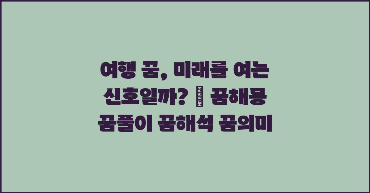 여행 꿈: 미래를 예측하는 신호? | 꿈해몽 꿈풀이 꿈해석 꿈의미에 대해 생각하다 보면, 우리는 꿈을 통해 우리가 어떤 사람인지, 무엇을 향해 나아가고 있는지를 깨닫게 된다. 꿈속에서의 여행은 우리의 내면의 상처를 치유하고, 삶의 새로운 방향을 찾아가는 과정을 시사한다. 그러므로 이러한 꿈들을 그냥 무시하지 말고, 여러분의 삶에 대한 깊은 질문으로 삼아보자.
