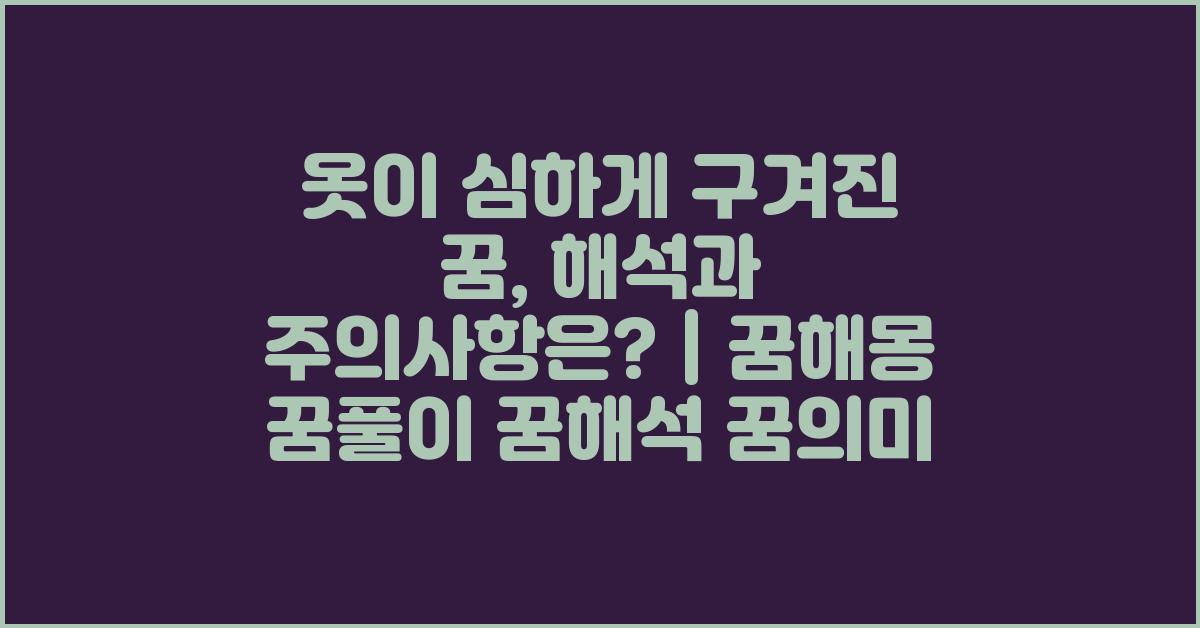 옷이 심하게 구겨진 꿈, 주의할 점은? | 꿈해몽 꿈풀이 꿈해석 꿈의미라는 주제를 통해 꿈의 의미와 해석 방법을 알아보았습니다. 이러한 꿈이 주는 여러 가지 감정적이고 정신적인 메시지를 잘 받아들이면, 내 삶을 더 긍정적으로 이끌어 나갈 수 있는 계기가 될 것입니다. 꿈을 통해 여러분의 마음을 이해하고, 일상에 적용하실 수 있는 방법을 찾아내시길 바랍니다!