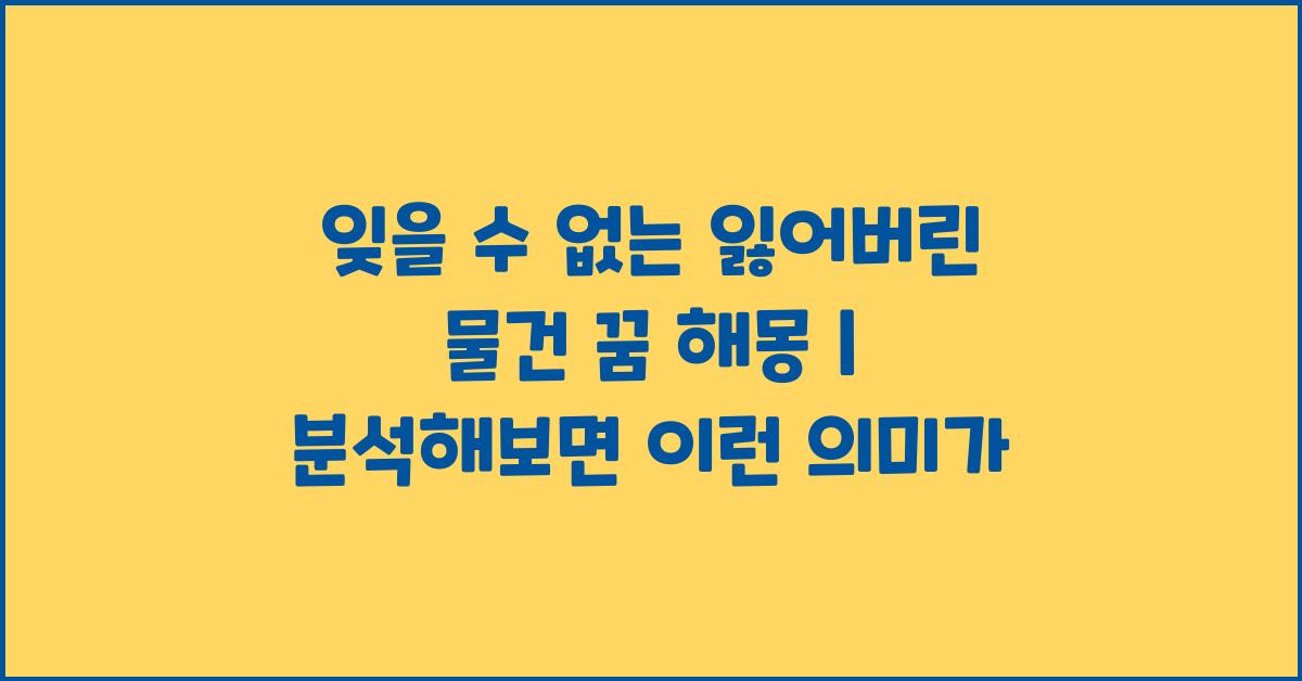 Q1: 잃어버린 물건 꿈 해몽은 어떤 걸 의미하나요?
