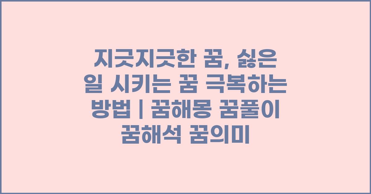 지긋지긋한 꿈, 싫은 일 시키는 꿈 극복하기 | 꿈해몽 꿈풀이 꿈해석 꿈의미를 알아보기에 앞서, 지긋지긋한 꿈이 무엇인지 이야기해보겠습니다. 우리는 수면 중 다양한 꿈을 꾸며, 그 중에는 기분이 좋지 않거나 불편한 꿈도 많습니다. 특히, 누군가에게 싫은 일을 시키는 꿈은 일상에서도 경험할 법한 불안과 스트레스를 반영합니다. 이러한 꿈은 종종 현실의 스트레스와 압박을 상징하는 경우가 많습니다.