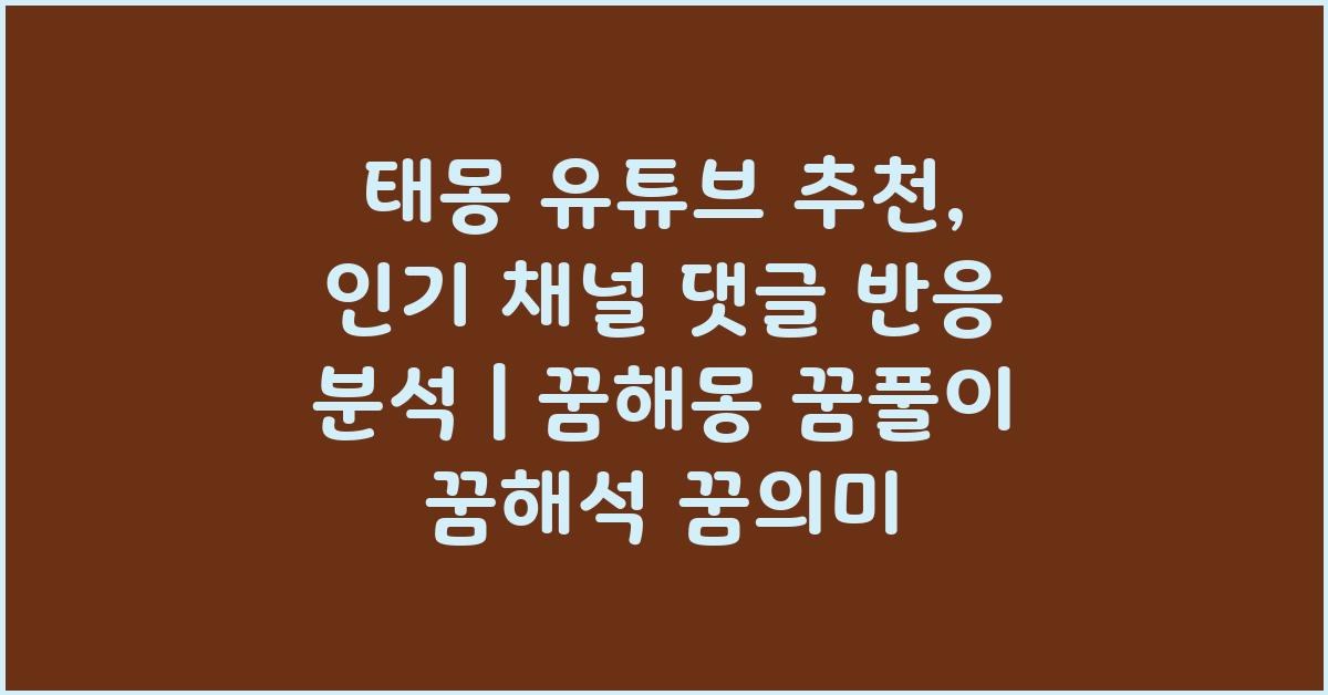 3. 어떻게 태몽 유튜브 추천 채널을 찾을 수 있나요?