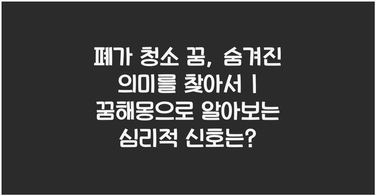 여러분, 꿈을 꿀 때 마음속에 품었던 다양한 감정들이 어떻게 표현되는지 생각해본 적 있으신가요? 특히 폐가 청소 꿈을 꾸었다면, 그 순간의 감정과 상황이 결코 우연은 아닐 수도 있습니다. 폐가 청소 꿈은 우리가 잊고 있었던 감정이나 경험을 되살려 줄 수 있는 특별한 신호로 해석될 수 있습니다. 이 글에서는 폐가 청소 꿈의 숨겨진 의미를 깊이 있게 탐구해보려 합니다.
