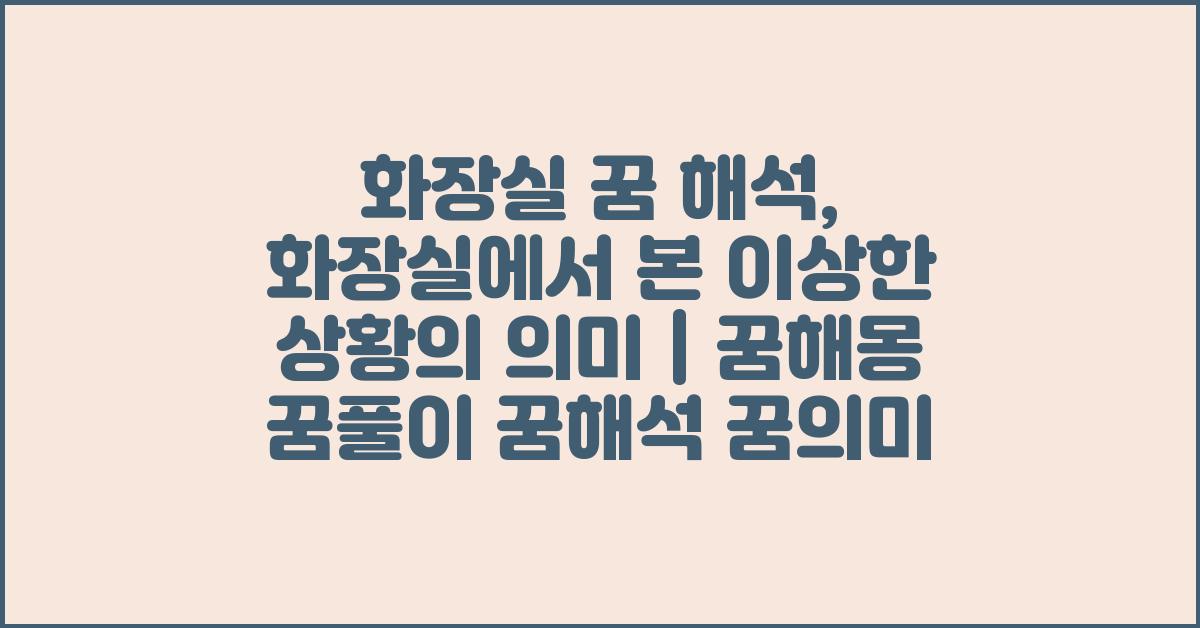 꿈은 인간의 심리를 이해하는 데 큰 도움을 주는 신비로운 영역입니다. 특히, 화장실 꿈 해석은 그 의미가 다양합니다. 화장실은 우리의 생활에서 매우 중요한 역할을 하는 장소이며, 꿈속에서 화장실을 보는 것은 흔한 일이기도 합니다. 그렇다면 이 꿈에서 본 화장실의 모습은 무슨 의미를 가질까요? 오늘은 이 꿈이 주는 여러 메시지를 탐구해 보겠습니다.