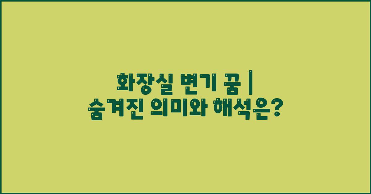 이러한 질문들이 여러분이 꿈의 의미를 좀 더 깊이 이해하는 데 도움이 될 수 있을 겁니다. 화장실 변기 꿈 | 꿈해몽 꿈풀이 꿈해석 꿈의미와 같은 키워드를 중심으로 분석하면 많은 것이 보일 수 있습니다.