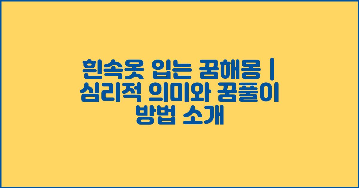이제 흰속옷 입는 꿈해몽에 대한 다양한 해석을 통해 독자 여러분의 꿈에 존재하는 심리적 의미를 알아보러 가봅시다. 그 과정은 기대 이상의 의미 있는 여정이 될 것입니다.