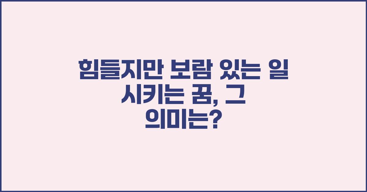 꿈에서 힘든 일을 겪는 것 자체는 누구에게나 불쾌할 수 있지만, 그 끝에는 항상 귀한 교훈이 존재합니다. 힘들지만 보람 있는 일 시키는 꿈 | 꿈해몽 꿈풀이 꿈해석 꿈의미는 이처럼 더욱 귀한 경험을 전달해 줍니다. 꿈 속에서 어려움을 겪은 후, 이를 이겨낸 사람의 모습은 환영받고 사랑받는 듯한 느낌을 주죠.